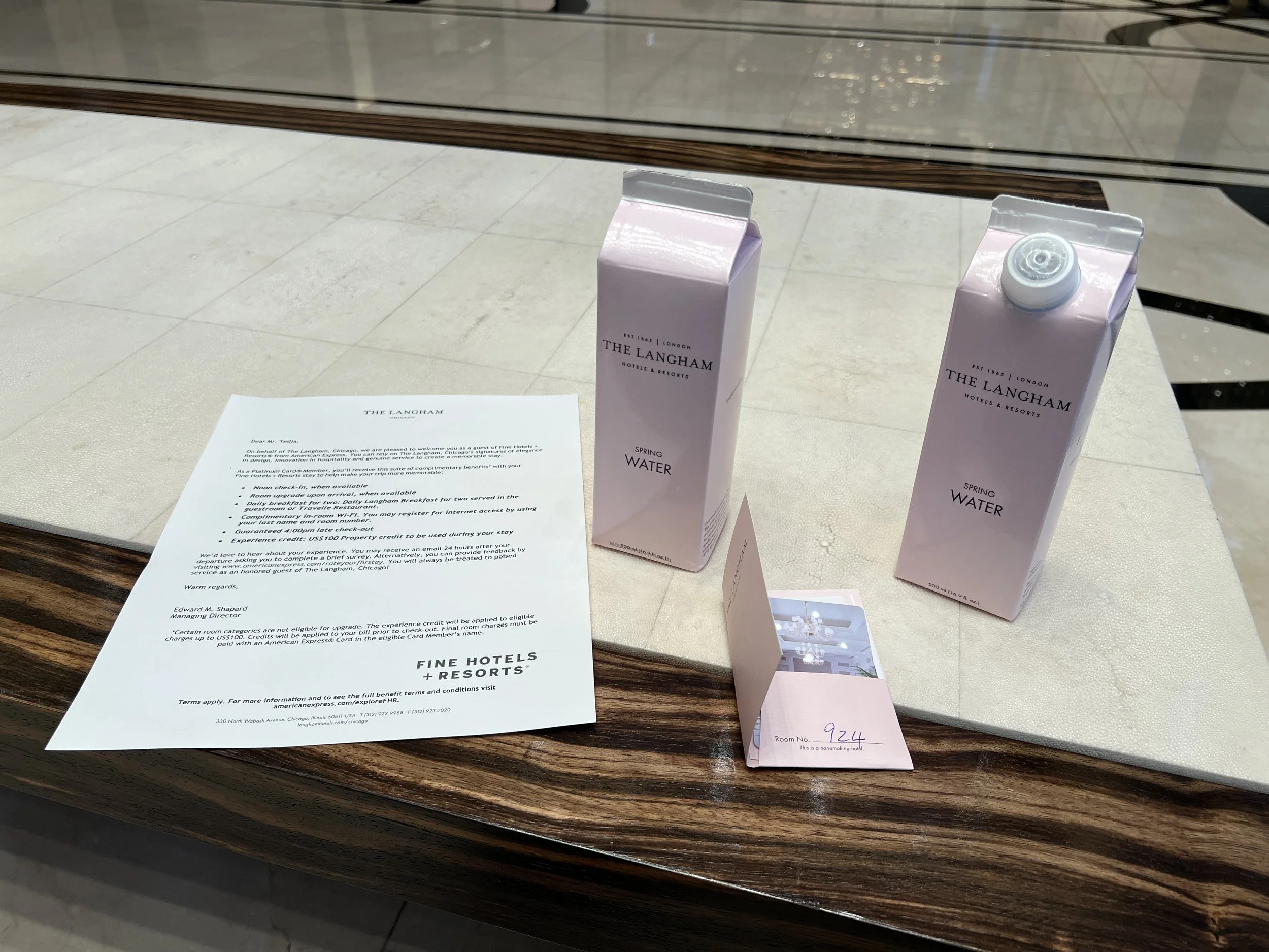 Luckily, the hotel allowed us to check-in far before the published time. We were given Langham branded water bottles and were sat down for a quick briefing of our Fine Hotels and Resorts benefits.